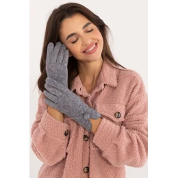 Elegantné dámske rukavice zo zateplenej hladkej tkaniny. Ozdobný gombík a rozparok na zápästí. Ukazovák s vyšívaným kvetom, ktorý umožňuje ovládať telefón bez nutnosti vyzliecť si rukavice.