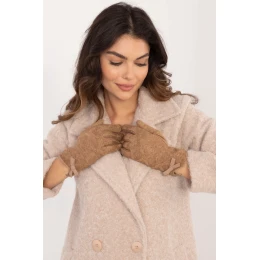 Elegantné dámske rukavice z hrejivého materiálu so zaujímavým vzorom. Ozdobné mašle na zápästí. Ukazovák s vyšívaným kvetom umožňuje ovládať telefón bez nutnosti vyzliecť si rukavice.