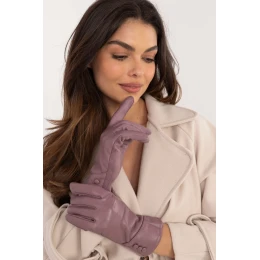 Elegantné dámske rukavice z hrejivého materiálu v kombinácii s ekologickou kožou. Ozdobné gombíky na zápästí. Ukazovák s vyšitým kvetom umožňujúci ovládanie telefónu bez nutnosti vyzliecť si rukavice.