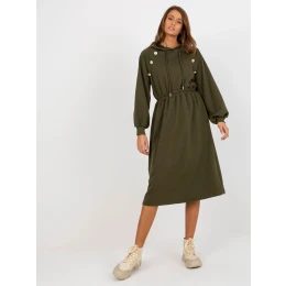 Khaki midi rozšírené teplákové šaty s gombíkmi.