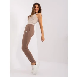 Hnedé tepláky s úzkymi nohavicami.