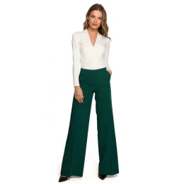 65 % polyester 30 % viskóza 5 % elastan Môžu byť dámske nohavice ešte ženskejšie? Vďaka širokým rozšíreným nohaviciam, ktoré sa dotýkajú zeme, a priliehavému dizajnu s nízkym pásom vyzdvihnú to najlepšie z vašej postavy.DETAILY VÝROBKU: tkaná látka rozšírený dizajn široké nohavice zapínanie na gombík a zips vpredu šikmé vrecká Naša modelka meria 174 cm a nosí veľkosť S