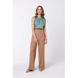 95% polyester 5% elastan Široké nohavice so záhybmi v páse - klasické a trendy. DETAILY VÝROBKU: tkaná látka pás široký dizajn záhybov v páse skryté zapínanie na zips v zadných bočných vreckách náš model meria 174 cm a nosí veľkosť S