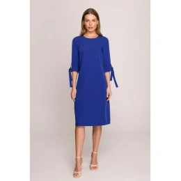 S393 Šaty áčkového strihu so zaväzovacími rukávmi - kráľovská modrá