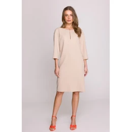 S394 Uvoľnené šaty s výstrihom s kľúčovou dierkou - béžové