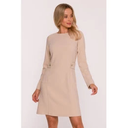 S419 Šaty s ozdobnými gombíkmi v páse - béžové