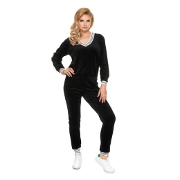 Tepláková súprava z velúru s výstrihom do V. Tepláková súprava je zdobená kontrastným lemovaním.