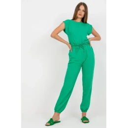 Letná súprava pozostávajúca z blúzky a dlhých nohavíc. Blúzka klasického strihu so zapínaním pri krku. Dlhé nohavice s pružným pásom a viazaním, s vreckami na bokoch.