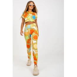 Letný set pozostávajúci z trička a legín. Tričko s krátkym rukávom. Legíny s vysokým pásom a zúženými nohavicami.