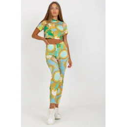 Letný set pozostávajúci z trička a legín. Tričko s krátkym rukávom. Legíny s vysokým pásom a zúženými nohavicami.