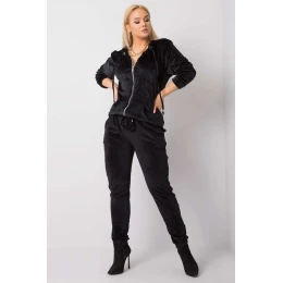 Velúrová súprava pozostávajúca z mikiny a dlhých nohavíc. Mikina s dlhými rukávmi a kapucňou, zapínanie na zips, vrecká na prednej strane. Dlhé nohavice so šnúrkou v páse a vreckami na bokoch.