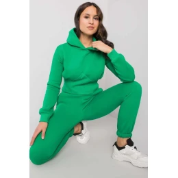 Dámska tepláková súprava pozostávajúca z mikiny a nohavíc. Krátka mikina s dlhými rukávmi a kapucňou. Dlhé nohavice so zaväzovaním v páse a nakladanými vreckami.