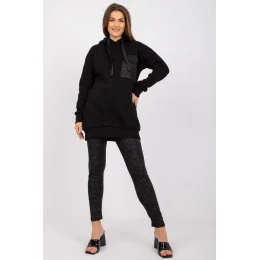 Tepláková súprava pozostávajúca z mikiny a legín. Mikina s dlhým rukávom a kapucňou, legíny so širokým elastickým pásom.