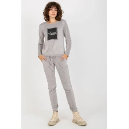 Velúrová tepláková súprava pozostávajúca z mikiny a nohavíc. Blúzka s dlhými rukávmi a ozdobným nápisom na prednej strane. Dlhé nohavice so zaväzovaním v páse a nakladanými vreckami.