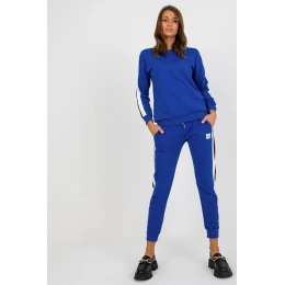 Tepláková súprava pozostávajúca z mikiny a nohavíc. Blúzka s dlhými rukávmi a okrúhlym výstrihom. Dlhé nohavice so zaväzovaním v páse a nakladanými vreckami. Súprava s ozdobným dvojfarebným lemovaním.