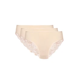 Trojbalenie figových bavlnených nohavičiek s čipkovaným zadným dielom. Čipkovaný zadný diel nohavičiek nerobí viditeľné stopy pod oblečením. Pohodlný strih, ktorý neobmedzuje pohyb. Široký elastický pás účinne udržiava spodnú bielizeň na mieste. Je pohodlný a nezarezáva sa do tela. Klin bol vyrobený z bavlny s certifikátom OEKO-TEX, vďaka čomu sú nohavičky pohodlné a bezpečné pre intímne partie. Predná časť nohavičiek je vyrobená zo 100 % bavlny z poľskej pradiarne. Nohavičky boli navrhnuté a vyrobené v Poľsku.