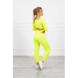 Predstavujeme vám sadu blúzky a nohavíc. Blúzka z rebrovanej tkaniny s dlhými rukávmi. Obyčajné nohavice bez vreciek. Súprava je vyrobená z vysoko kvalitného materiálu. Veľkosť je univerzálna a vyhovuje dámam veľkosti S, M alebo L.