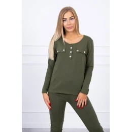 Predstavujeme vám sadu blúzky a nohavíc. Blúzka má zapínanie vo výstrihu na patentky. Nohavice s vreckami a zaväzovaním v páse. Súprava je vyrobená z vysoko kvalitného materiálu. Veľkosť je univerzálna a vyhovuje dámam veľkosti S, M alebo L.