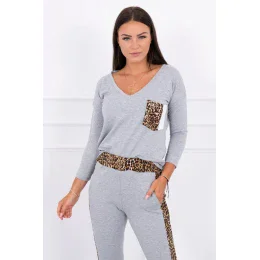 Sada s leopardím potlačou sivá