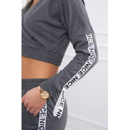 Predstavujeme vám sadu mikiny a nohavíc. Mikina a nohavice majú ozdobnú stuhu s nápisom. V spodnej časti mikiny je všitá guma. Nohavice s vreckami. Veľmi módna a štýlová sada. Súprava je vyrobená z vysoko kvalitného materiálu. Veľkosť je univerzálna a vyhovuje dámam veľkosti S, M alebo L.