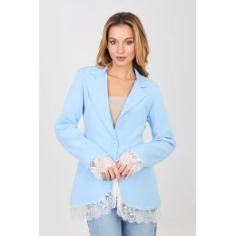 Elegantní dámský žaket standardní délky navržený pro ženy, které ocení nadčasový styl a univerzálnost. Model s hladkým povrchem se skvěle hodí jak do pracovního outfitu, na schůzky, tak i na večírek nebo každodenní nošení. Žaket má vestavěné ramenní polštářky, které jemně zdůrazňují siluetu a dodávají jí výrazný elegantní charakter. Otevírací límec přidává elegance a jednořadé zapínání na knoflík zajišťuje pohodlí a estetické přilnutí. Imitace kapes pod patkami zdůrazňují formální styl modelu, zachovávajíce přitom jeho lehkost. Dlouhý rukáv a spodní lem žaketu jsou pečlivě sešity jemnou krajkou, která dodává ženský a originální akcent. Model má podšívku, co zvyšuje pohodlí nošení a zajišťuje, že žaket se perfektně drží na siluetě. Vyrobený z vysoce kvalitní směsi polyesteru s přídavkem elastanu zaručuje trvanlivost, pružnost a volnost pohybu. Ideální volba pro ženy, které hledají elegantní a zárove