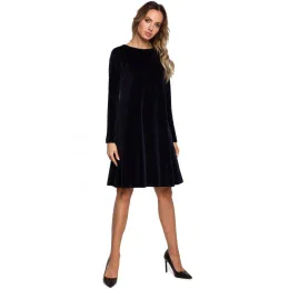 - šaty uvoľneného strihu s dlhými rukávmi z mäkkej zamatovej tkaniny,