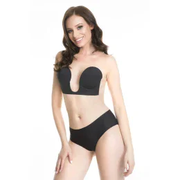 Samodržiaca podprsenka s pevným stredovým strihom, ideálna pre hlboké výstrihy. Hodí sa aj k oblečeniu, ktoré odhaľuje holé ramená alebo chrbát - podprsenka nemá viditeľné zapínanie ani ramienka. Košíčky na takzvanom bezpečnom lekárskom lepidle s kosticami v spodnej časti ľahko priľnú k telu, umožnia pozdvihnúť poprsie a večer ich môžete rýchlo a bezpečne odstrániť, opláchnuť pod tečúcou vodou a pripraviť na opätovné použitie. Bočné strany na priehľadných krídlach ešte zvyšujú pohodlie podprsenky. Podprsenka z kategórie Must Have - na večierok, Silvestra, rande, k neobvyklým blúzkam a šatám.