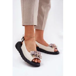 Tieto elegantné dámske sandále z prírodnej kože sú skvelou voľbou na letné dni. Umiestnené na platforme poskytujú pohodlie a stabilitu počas celého dňa. Kryštály na prednej strane dodávajú jedinečný charakter. Zapínanie na pracku umožňuje ideálne prispôsobenie sa nohe. Mäkká stielka zaručuje pohodlie, vďaka čomu sú tieto sandále dokonalým doplnkom elegantného štýlu na teplé dni.