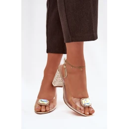 Elegantné priehľadné dámske sandále sú ideálnou voľbou na výnimočné príležitosti. Stabilný stĺpikový podpätok zdobený trblietavými kryštálmi dodáva celku luxusný charakter. Prednú časť zdobí efektná bižutérna aplikácia, ktorá priťahuje pozornosť a podčiarkuje elegantný štýl modelu. Kožená stielka zaručuje pohodlie aj počas dlhšieho nosenia. Pracka s nastaviteľným remienkom umožňuje ideálne prispôsobenie nohe a stabilitu pri každom kroku. Sandále dokonale doplnia večerné outfity, elegantné šaty a kreácie na slávnostné udalosti, pri ktorých záleží na elegancii a dokonalosti detailov.