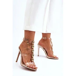 Tieto nevšedné sandále by nemali chýbať vo vašom šatníku! Majú plastový zvršok. Zdobia ich elegantné kamienky a zirkóny s imitáciou kamienkov. Vďaka stielke z prírodnej kože sa topánky pohodlne nosia. Sandále sú osadené na ihličkovom podpätku.