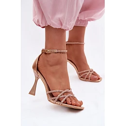 Tieto elegantné dámske sandále sú skvelou voľbou na výnimočné príležitosti, ako sú svadby, večierky alebo večerné vychádzky. Sú posadené na úzkom podpätku, krásne zvýrazňujú siluetu a dodávajú outfitom ľahkosť a ženský charakter. Remienky zdobené kryštálmi sa na svetle efektne trblietajú, dodávajú celku šperkový lesk a priťahujú pozornosť. Zapínanie na pracku s nastaviteľným remienkom umožňuje ideálne prispôsobenie nohe a zaručuje pohodlné nosenie. Ide o štýlovú ponuku pre ženy, ktoré chcú počas významných udalostí vyzerať elegantne a výnimočne.