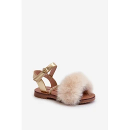 Sandałki Dziecięce Na Rzep Z Futerkiem Złote Rosavere