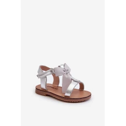 Sandałki Dziecięce Z Kokardką Na Rzep Srebrne Joratia