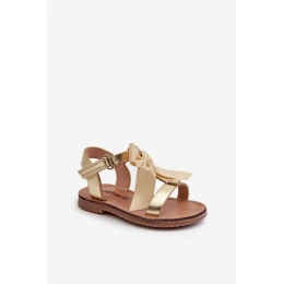Sandałki Dziecięce Z Kokardką Na Rzep Złote Joratia