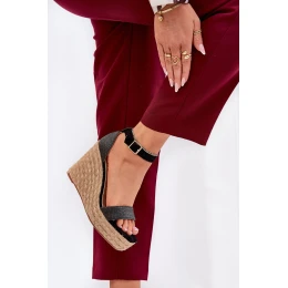Sandały Damskie Na Koturnie Z Plecionką Czarne Adelio