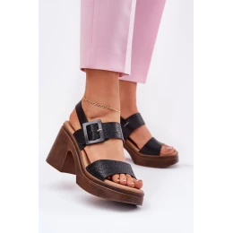 Sandały Damskie Na Masywnym Obcasie I Platformie Vinceza 17387 Czarne