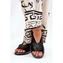 Sandały Damskie Na Płaskim Obcasie Z Ozdobą Czarne Setorina