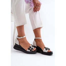 Sandały Damskie Na Platformie I Koturnie Z Kwiatami Białe Foviana