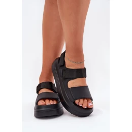 Sandały Damskie Na Platformie Z Rzepami Czarne Nitepira