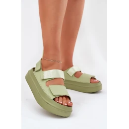 Sandały Damskie Na Platformie Z Rzepami Zielone Nitepira