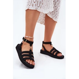 Sandały Damskie Na Platformie Ze Złotym Detalem Czarne Kartia