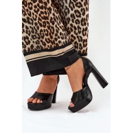 Sandały Damskie Na Słupku I Platformie Eko Skórzane Czarne Lomman