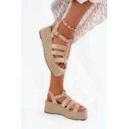 Sandały Damskie Z Paskami I Plecionką Beżowe Pardauss