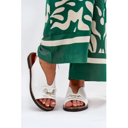 Sandały Na Płaskim Obcasie Z Ozdobą Eko Skóra Białe Tillireta