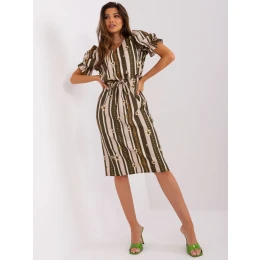 Khaki šaty s potlačou a krátkymi rukávmi.