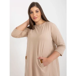 Tmavobéžové plus size mini šaty s 3/4 rukávmi Dalenne .