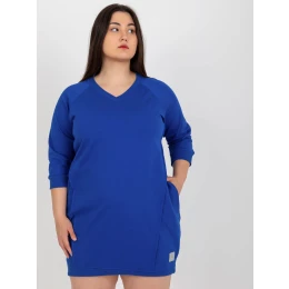 Kobaltové mini plus size šaty s 3/4 rukávmi.