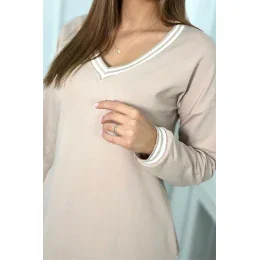 Šaty s vreckami a véčkovým výstrihom béžovej farby