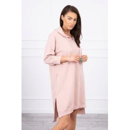 Šaty s kapucňou a dlhším chrbtom tmavo púdrovo ružové