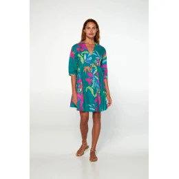 Šaty s krátkymi rukávmi, výstrihom do V a zapínaním na gombíky v uvoľnenom strihu. Vyberte si chladivé bavlnené kvetinové šaty na teplé letné rána.